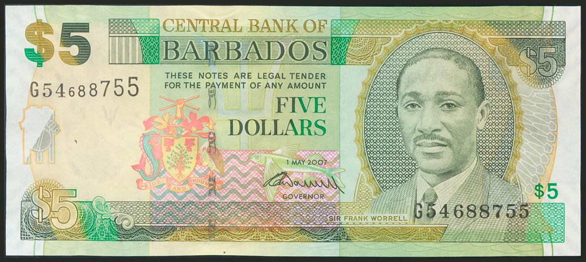 BARBADOS. 5 Dollars. 2007. (Pick: 67b). Uncirculated.