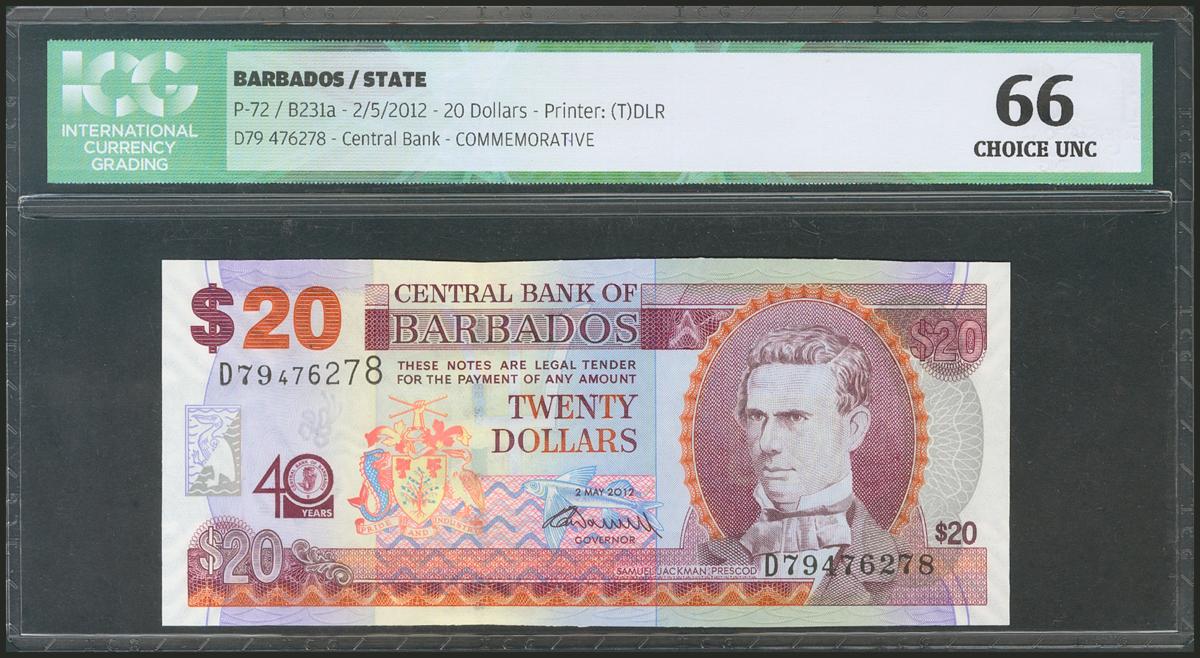 BARBADOS. 20 Dollars. 2 May 2012. (Pick: 72). ICG66.