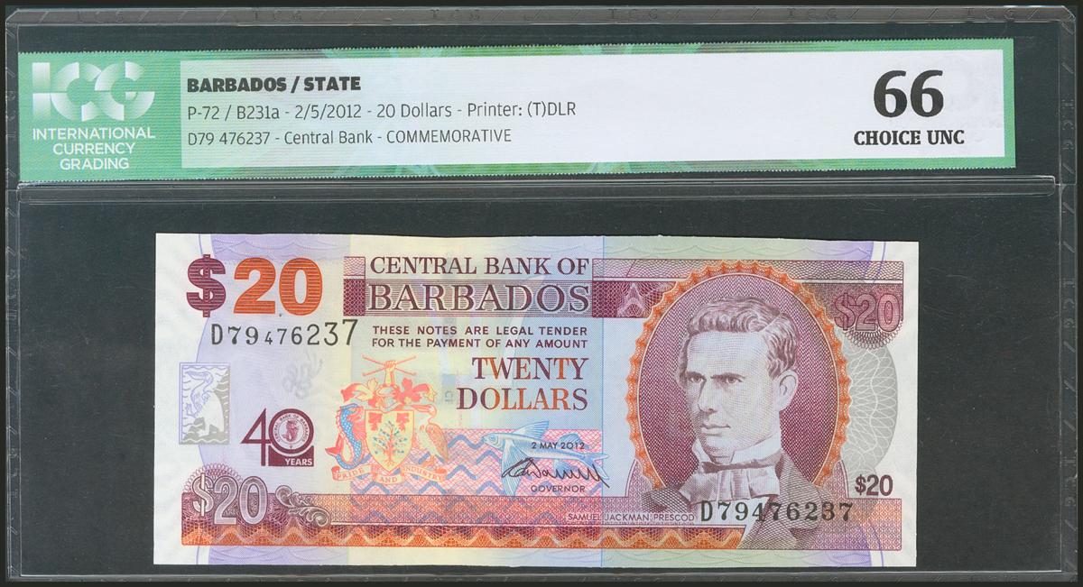 BARBADOS. 20 Dollars. 2 May 2012. (Pick: 72). ICG66.