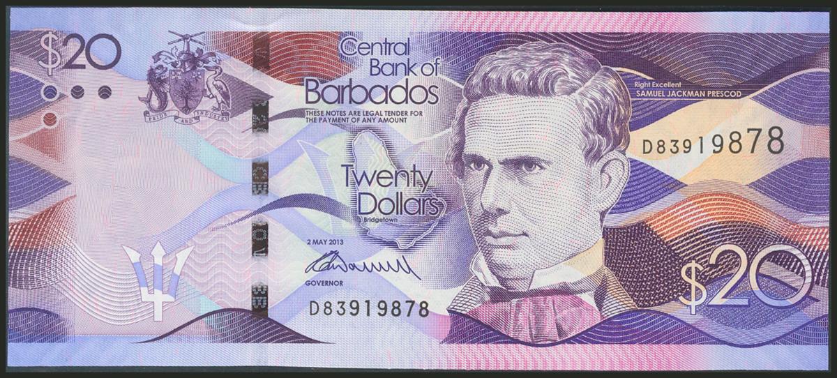 BARBADOS. 20 Dollars. 2013. (Pick: 76). Extremely fine.