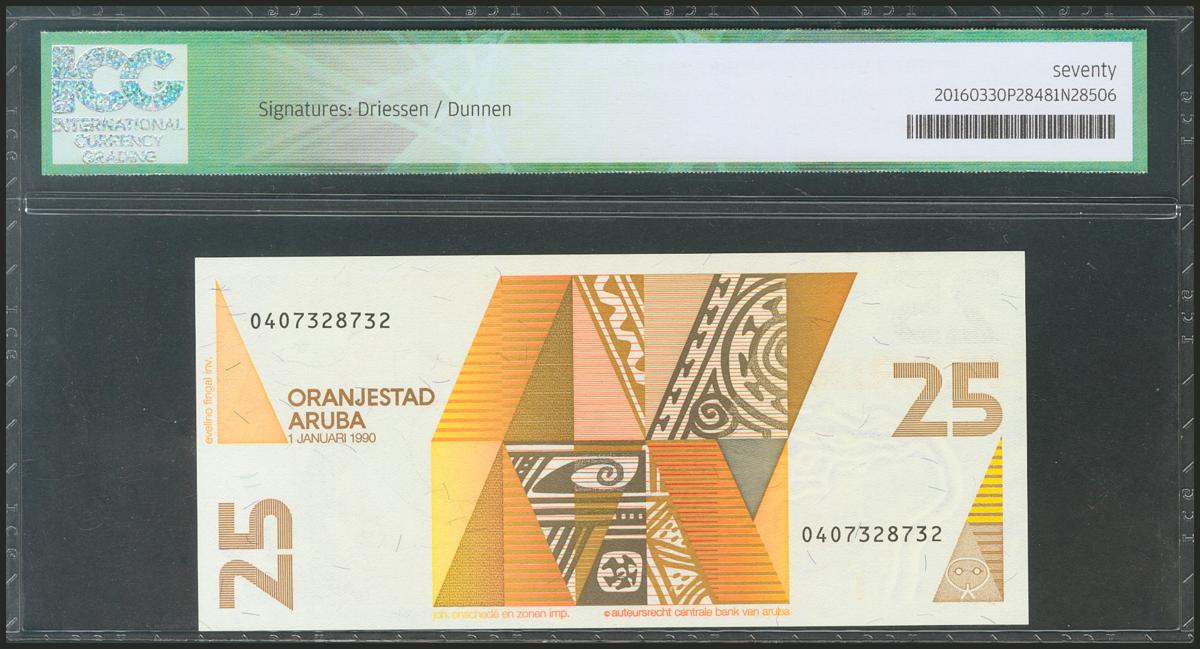 ARUBA. 25 Florin. 1 January 1990. (Pick: 8). ICG70.