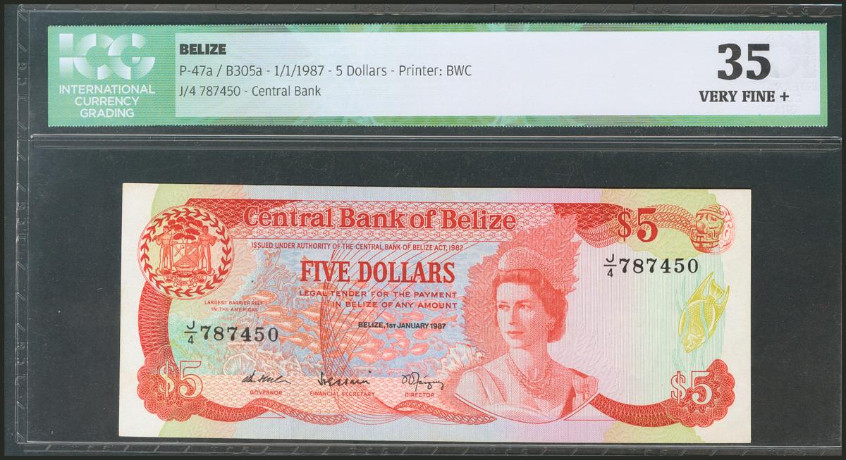BELIZE. 5 Dollars. 1 January 1987. (Pick: 47a). ICG35.