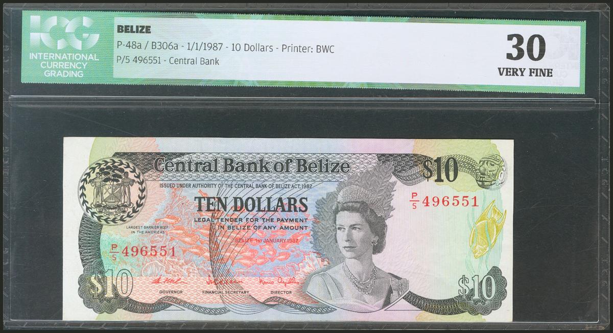 BELIZE. 10 Dollars. 1 January 1987. (Pick: 48a). ICG30.
