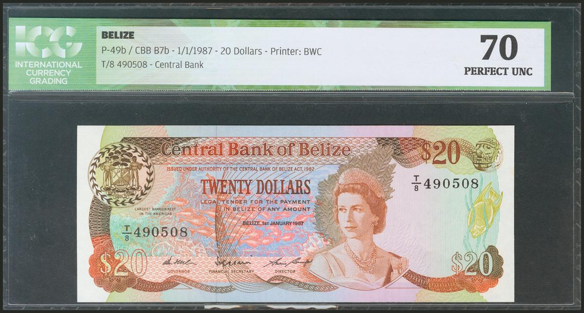 BELIZE. 20 Dollars. 1 January 1987. (Pick: 49b). ICG70.