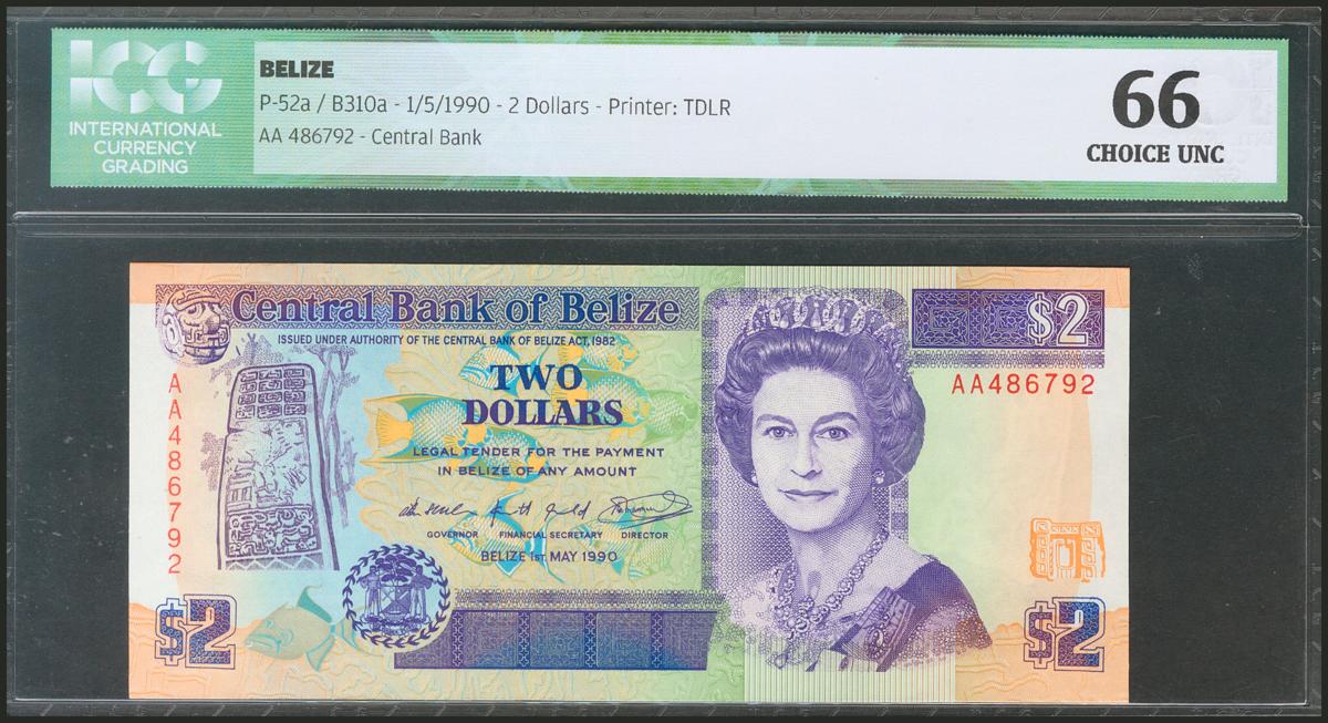BELIZE. 2 Dollars. 1 May 1990. (Pick: 52a). ICG66.