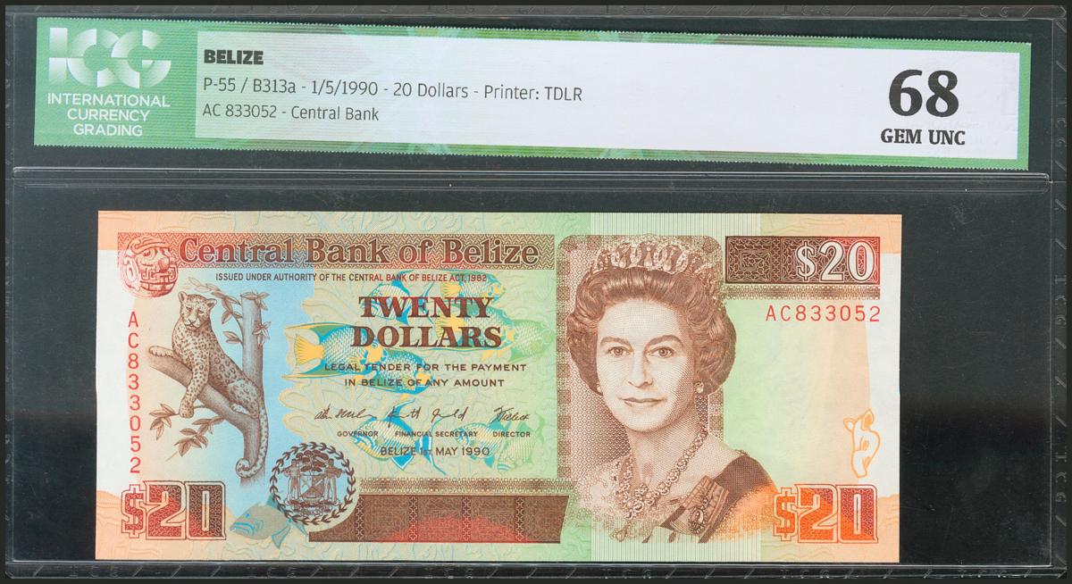 BELIZE. 20 Dollars. 1 May 1990. (Pick: 55). ICG68.