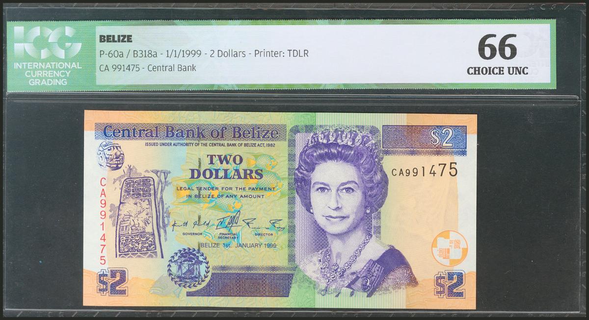 BELIZE. 2 Dollars. 1 January 1999. (Pick: 60a). ICG66.