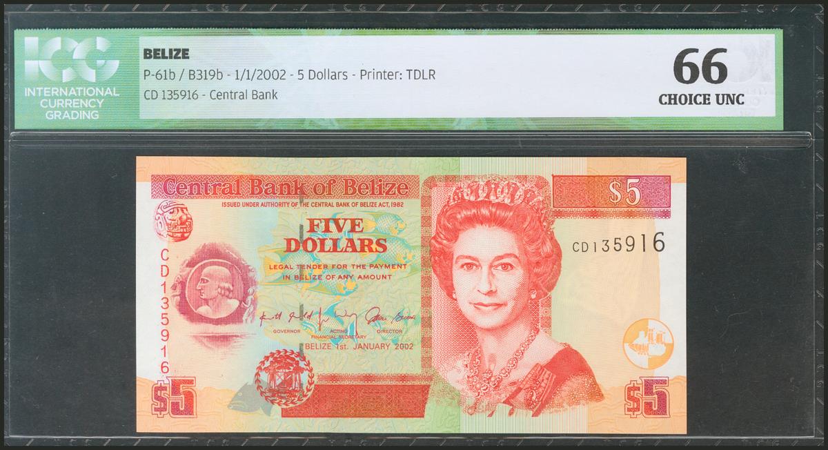 BELIZE. 5 Dollars. 1 January 2002. (Pick: 61b). ICG66.