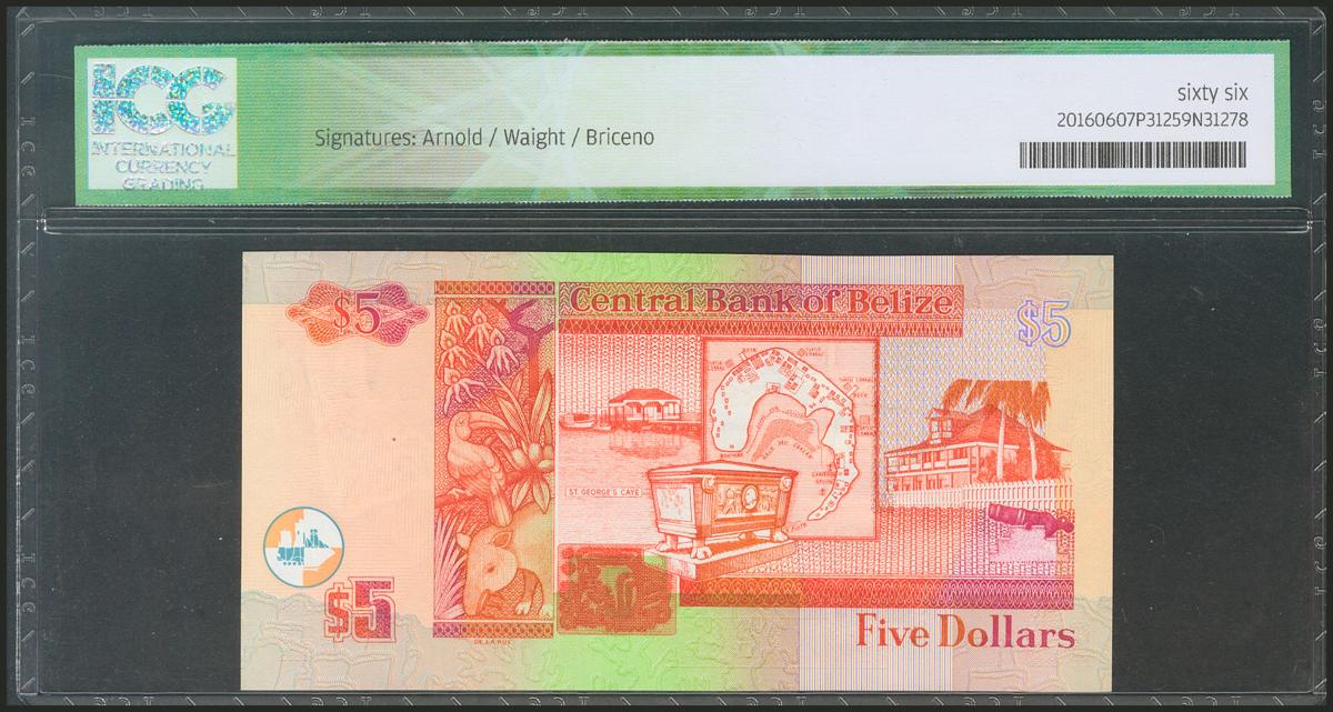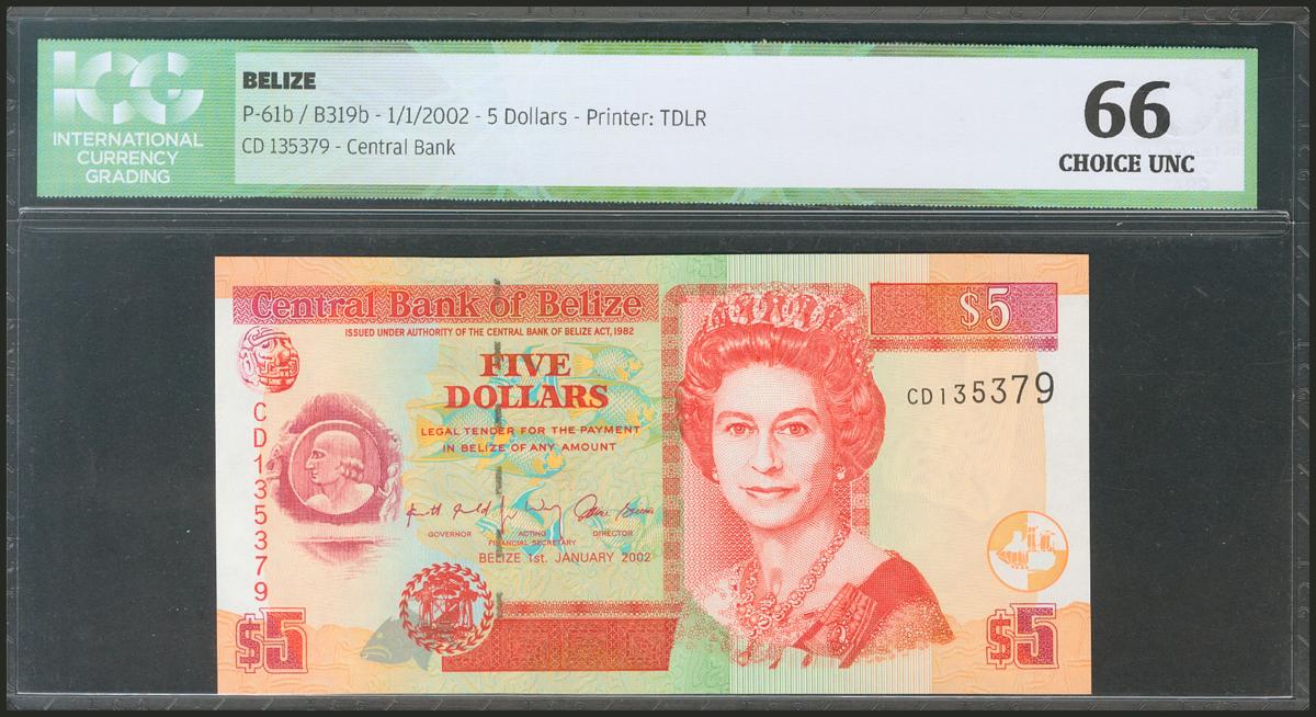 BELIZE. 5 Dollars. 1 January 2002. (Pick: 61b). ICG66.