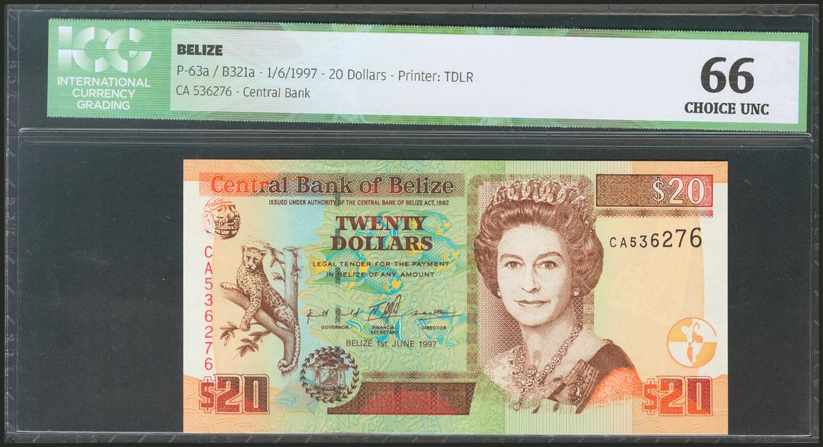 BELIZE. 20 Dollars. 1 June 1997. (Pick: 63a). ICG66.