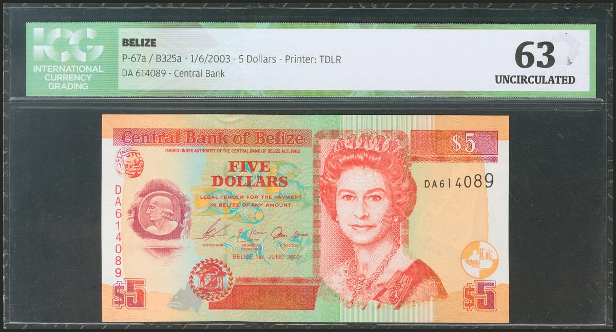 BELIZE. 5 Dollars. 1 June 2003. (Pick: 67a). ICG63.