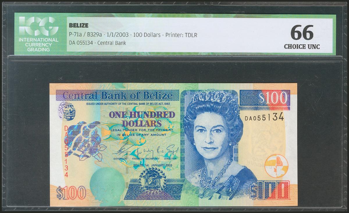 BELIZE. 100 Dollars. 1 January 2003. (Pick: 71a). ICG66.