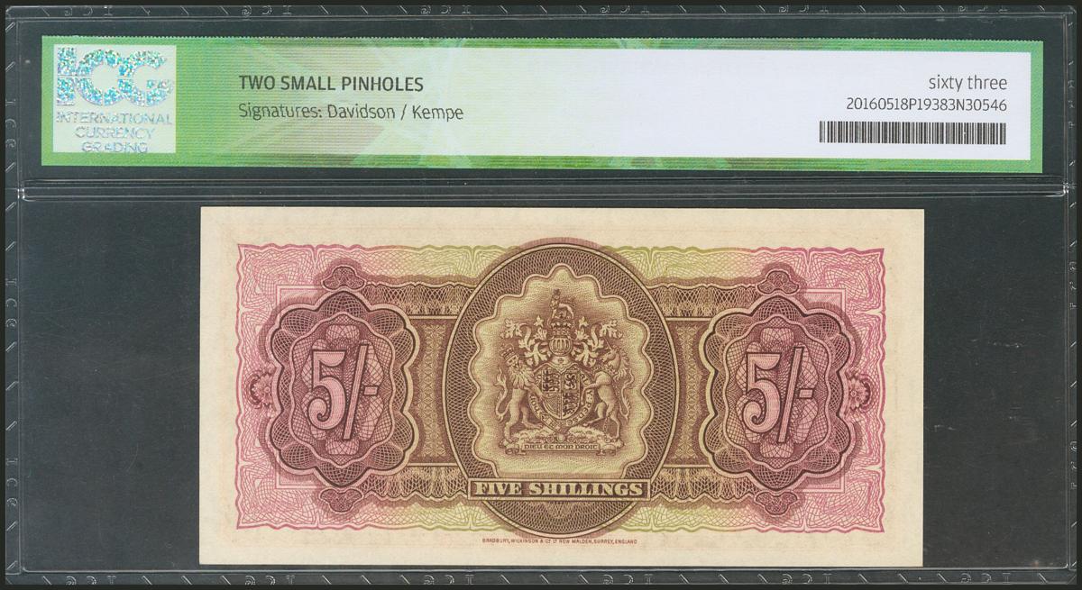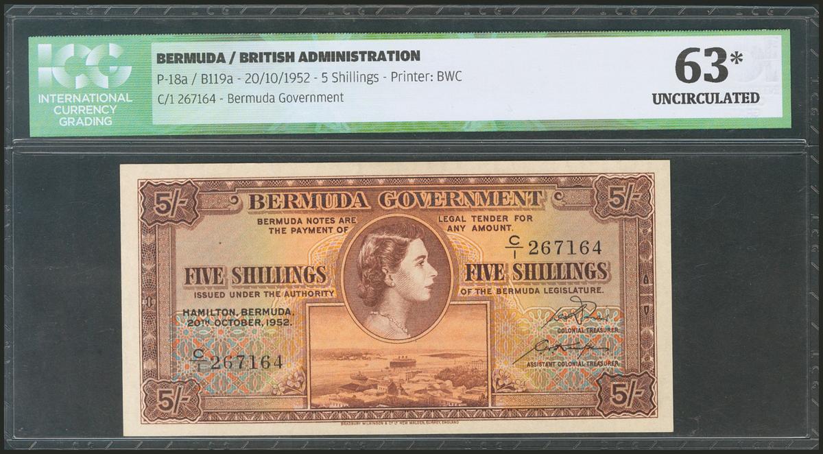 BERMUDA. 5 Shillings. 20 October 1952. (Pick: 18a). ICG63*.