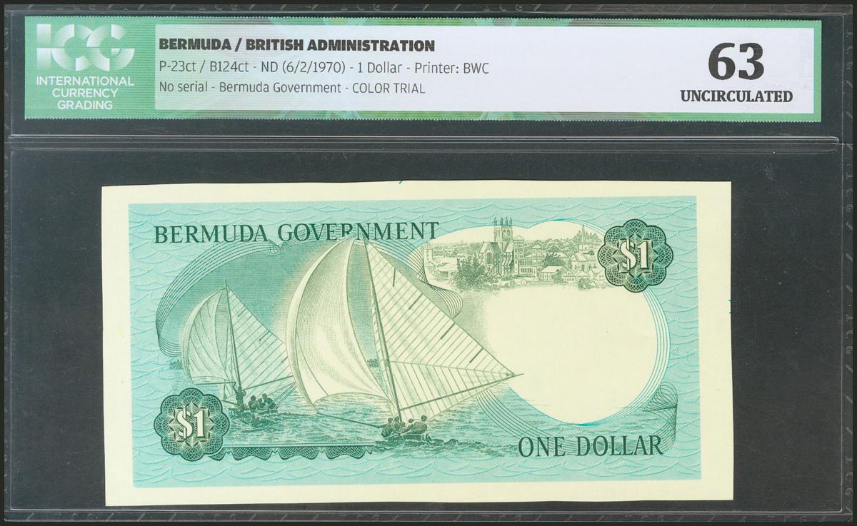 BERMUDA. 1 Dollar. 6 February 1970. Print failure. (Pick: 23ct). ICG63.