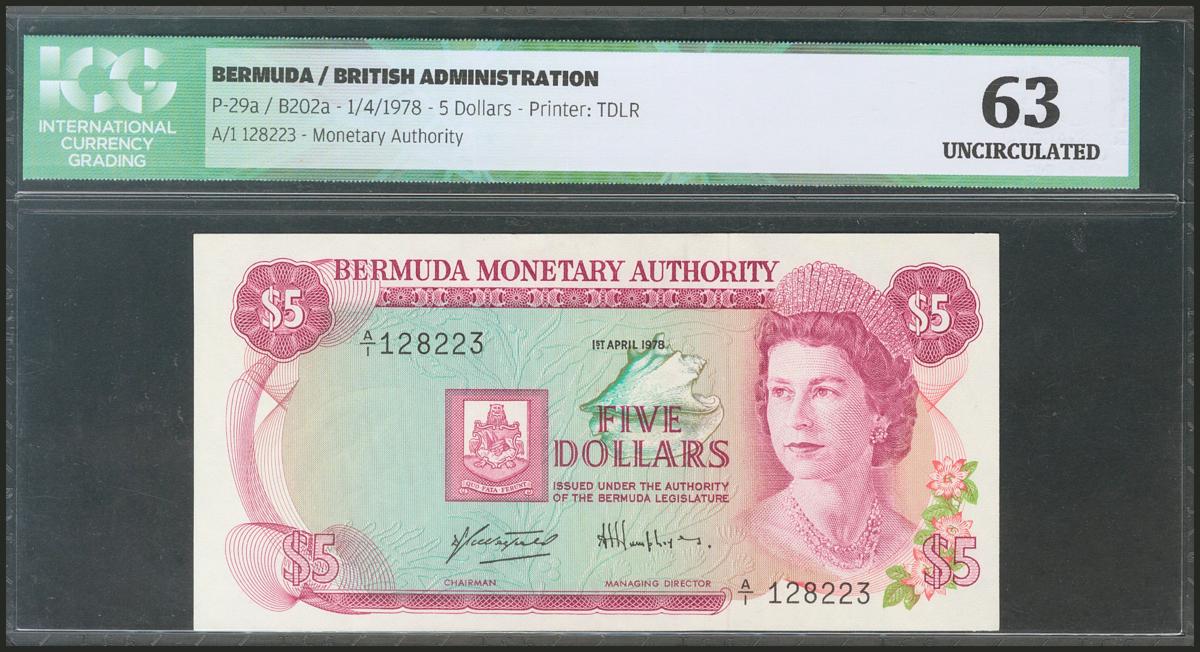 BERMUDA. 5 Dollars. 1 April 1978. (Pick: 29a). ICG63.