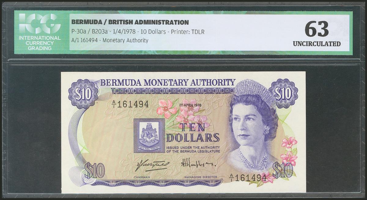 BERMUDA. 10 Dollars. 1 April 1978. (Pick: 30a). ICGS63.
