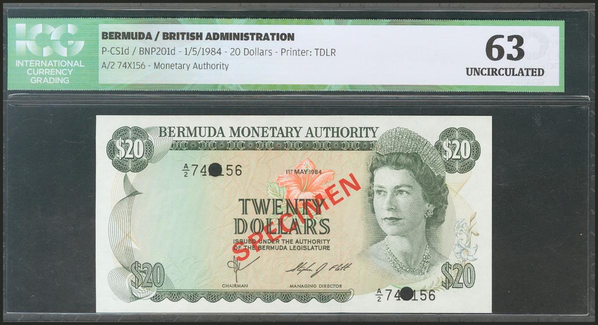 BERMUDA. 20 Dollars. 1 Mayo de 1984. Specimen. (Pick: 31s). ICG63.