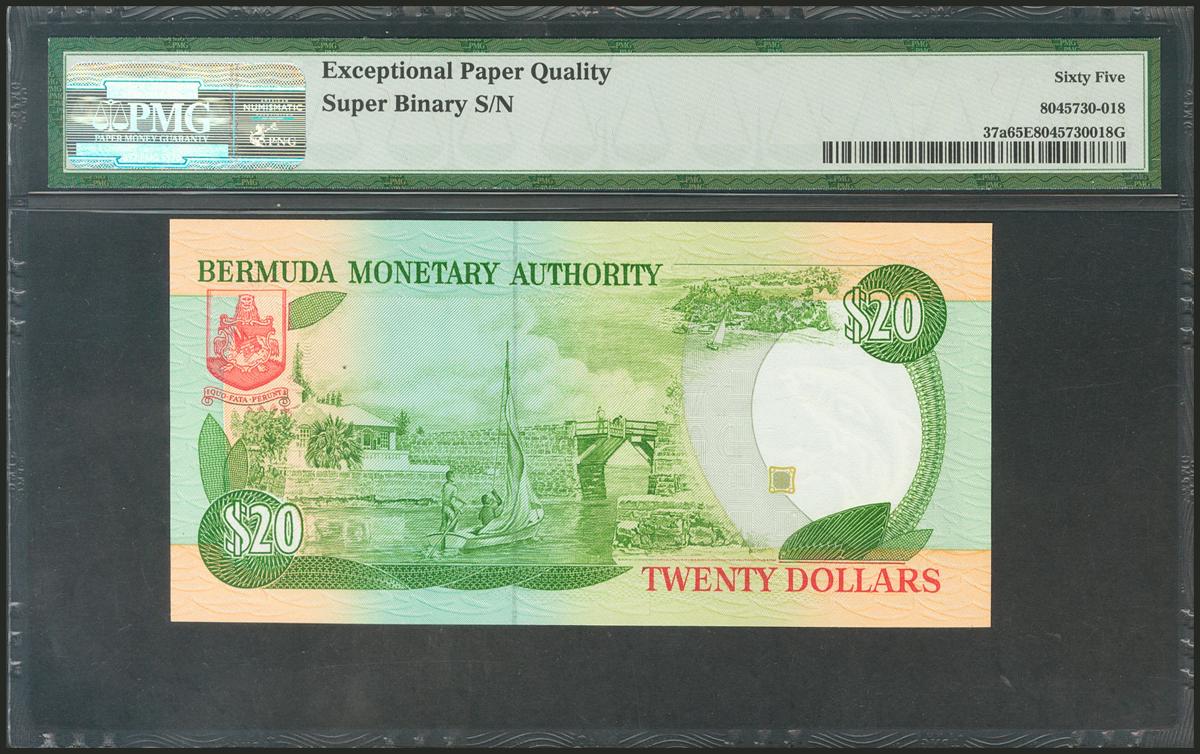 BERMUDA. 20 dollars. 1989. Palindromic. (Pick: 37a). PMG 65EPQ.