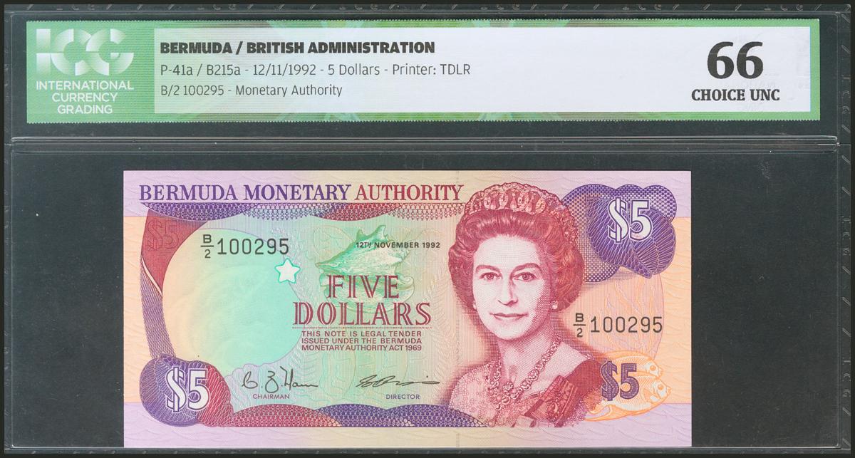 BERMUDA. 5 Dollars. 12 November 1992. Low serial. (Pick: 41a). ICG66.