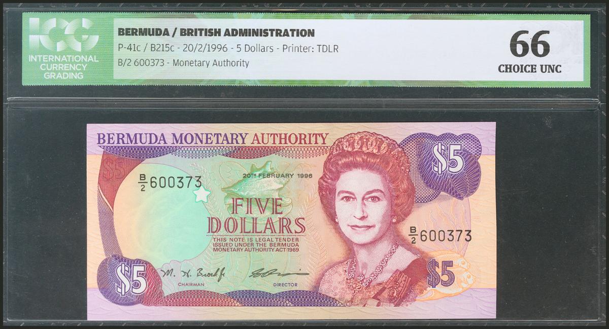BERMUDA. 5 Dollars. 20 February 1996. (Pick: 41c). ICG66.