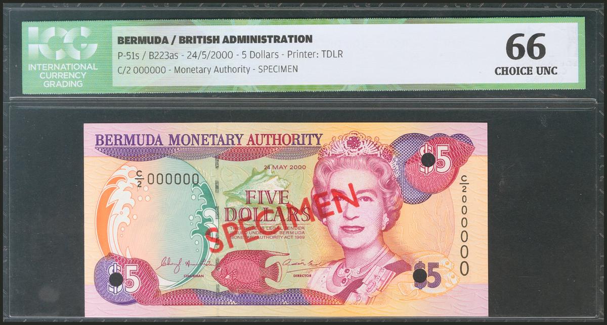 BERMUDA. 5 Dollars. 24 May 2000. Specimen. (Pick: 51s). ICG66.
