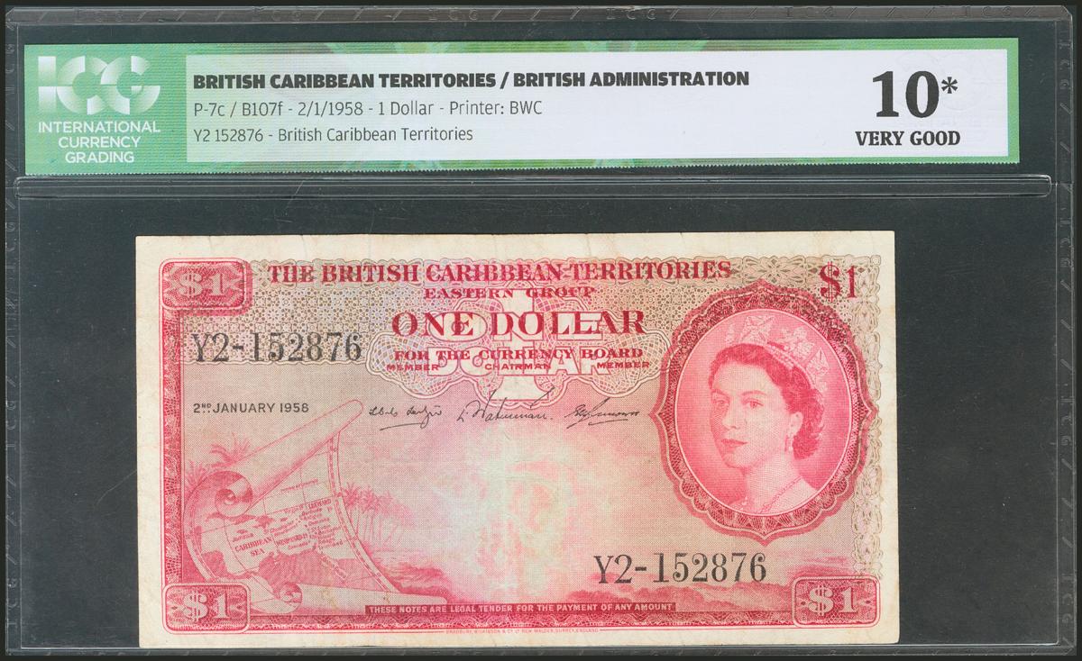 BRITISH CARIBBEAN TERRITORIES. 1 Dollar. 1958. (Pick: 7c). ICG10* (washed)