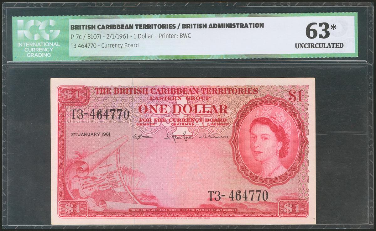 BRITISH CARIBBEAN TERRITORIES. 1 Dollar. 1961. (Pick: 7c). ICG63* (tiny spot bottom right).