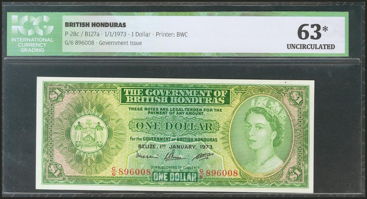 BRITISH HONDURAS. 1 Dollar. 1 January 1973. (Pick: 28c). ICG63* (tiny spot top right).