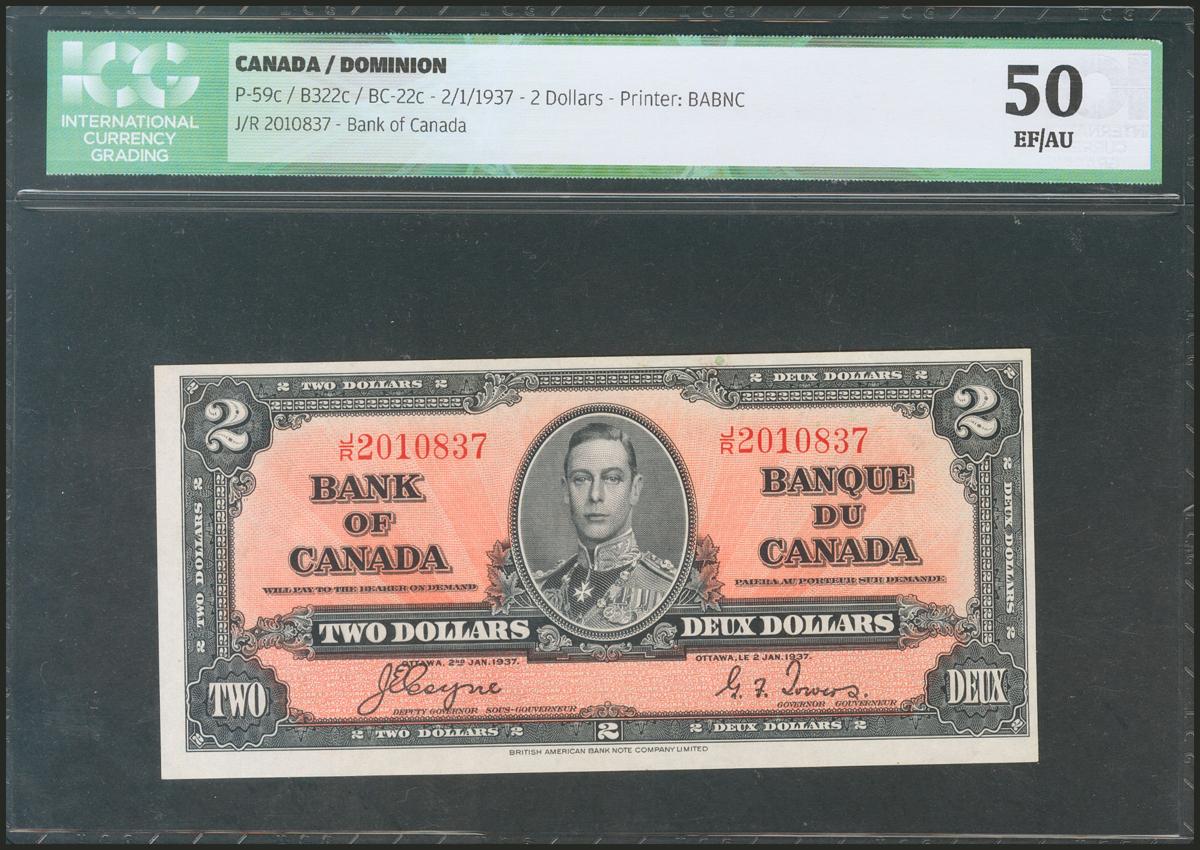 CANADA. 2 Dollars. 2 January 1937. (Pick: 59c). ICG50.