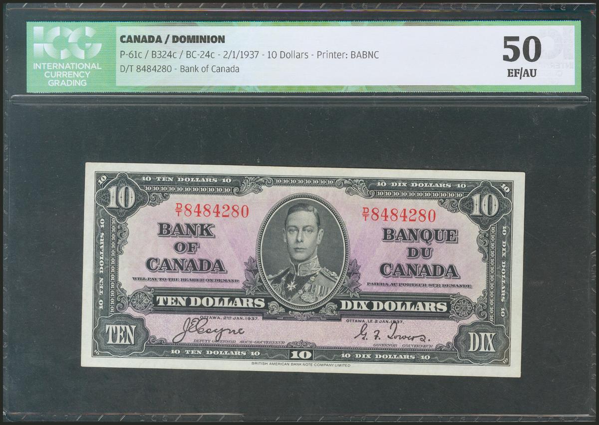 CANADA. 10 Dollars. 2 January 1937. (Pick: 61c). ICG50.