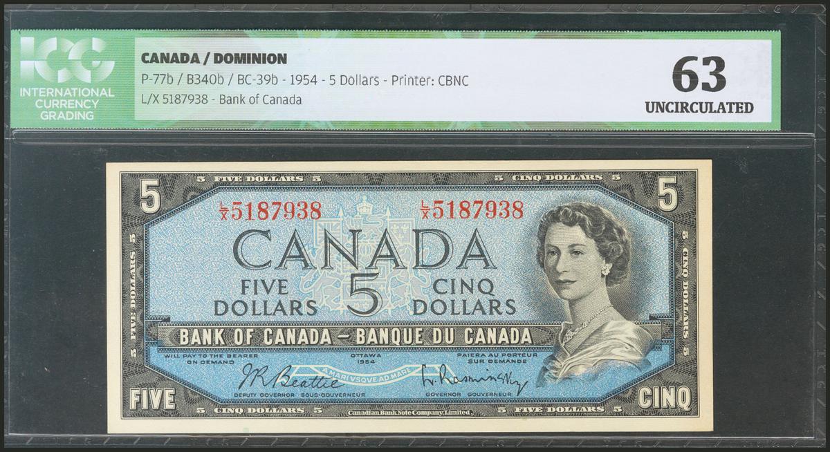 CANADA. 5 Dollars. 1954 . (Pick: 77b). ICG63.