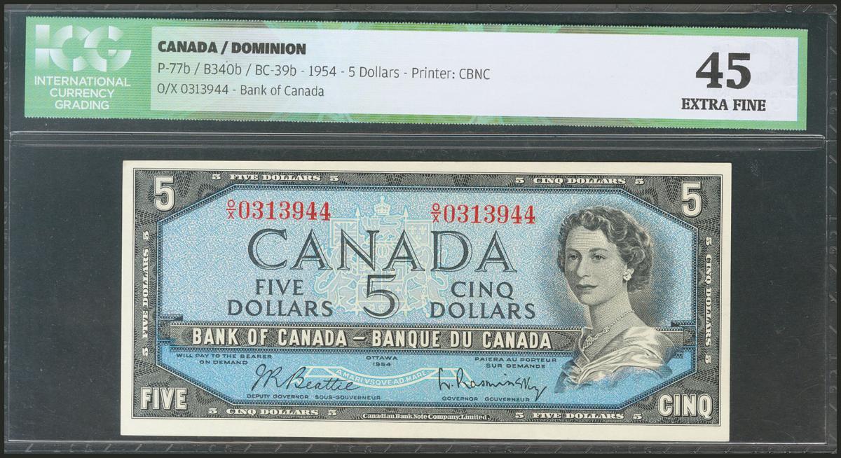 CANADA. 5 Dollars. 1954 . (Pick: 77b). ICG45.