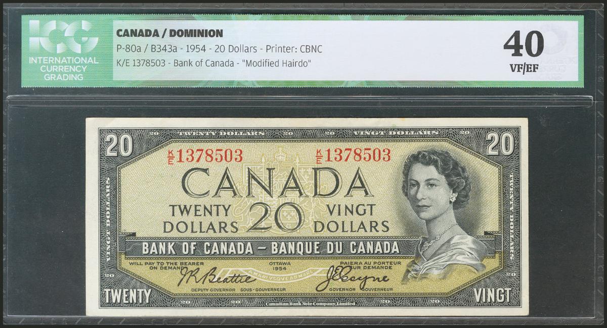 CANADA. 20 Dollars. 1954. (Pick: 80a). ICG40.