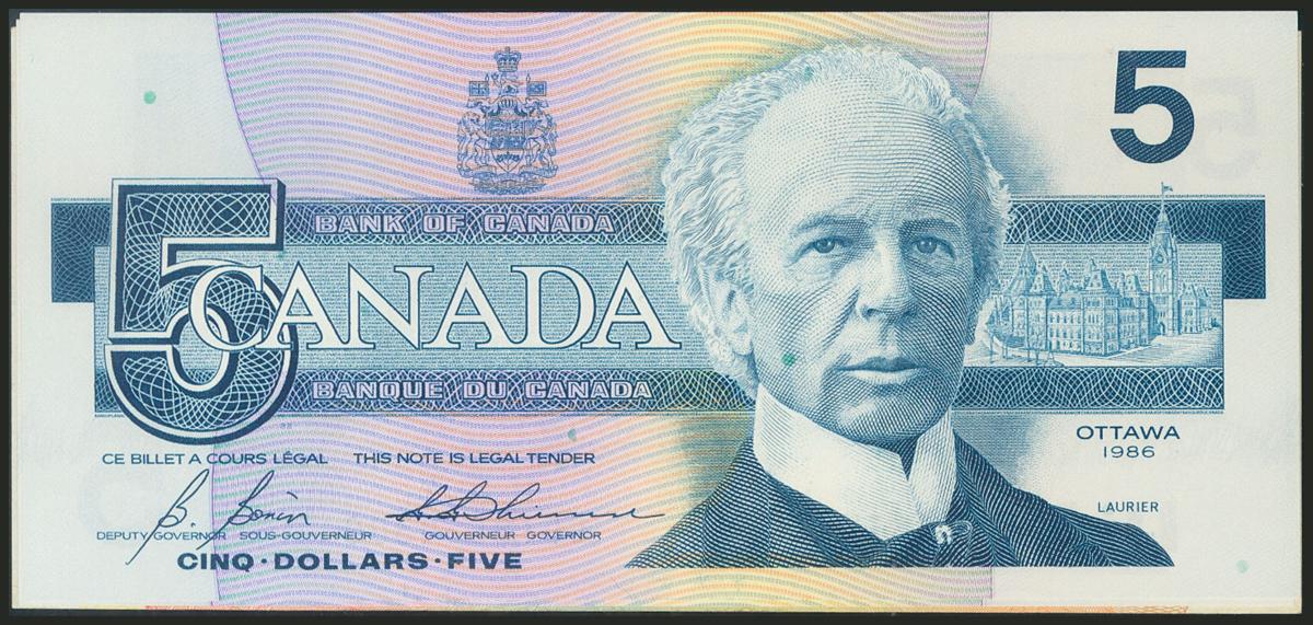 CANADA. Set of 3 banknotes of 5 Dollars, issued in 1972 and 1986. Extremely fine.