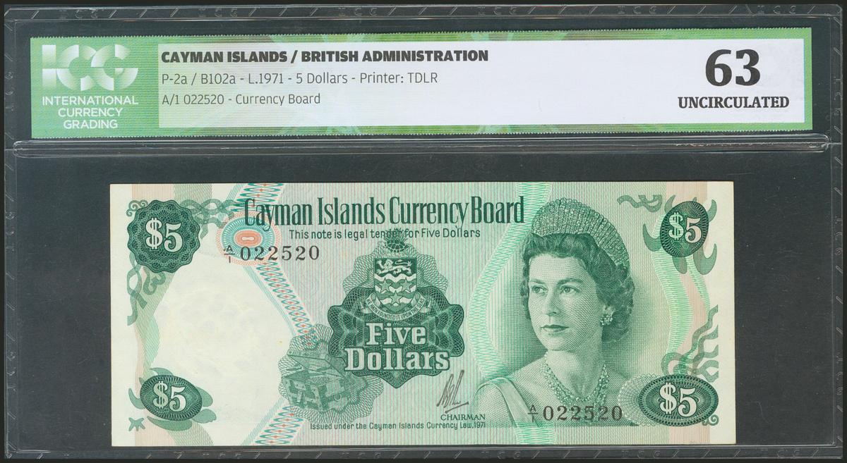 CAYMAN ISLANDS. 5 Dollars. 1971. (Pick: 2a). ICG63.