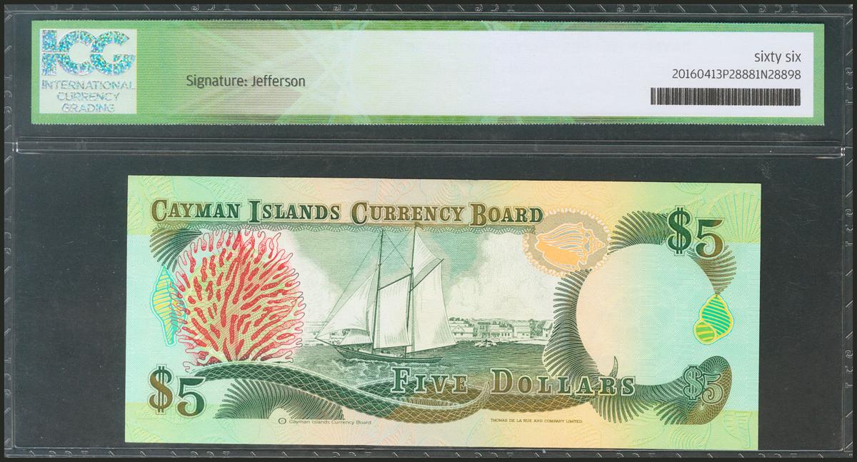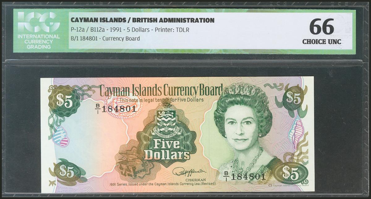 CAYMAN ISLANDS. 5 Dollars. 1991. (Pick: 12a). ICG66.