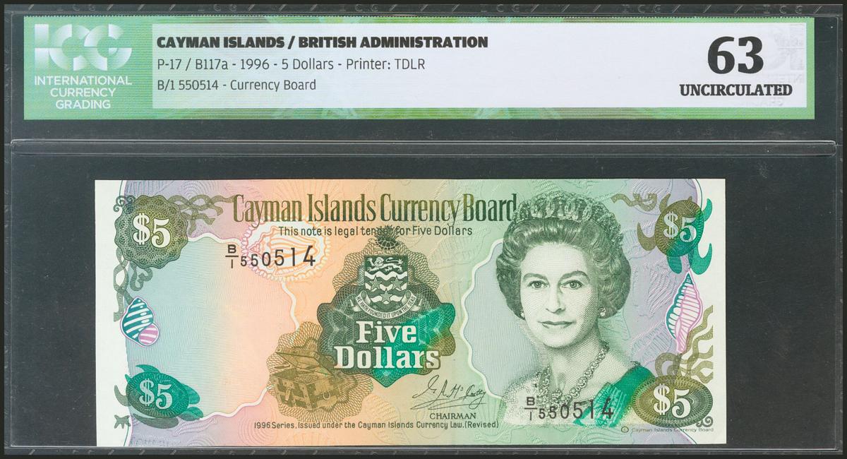 CAYMAN ISLANDS. 5 Dollars. 1996. (Pick: 17). ICG63.