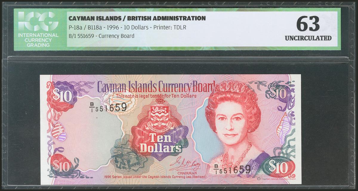 CAYMAN ISLANDS. 10 Dollars. 1996. (Pick: 18a). ICG63.