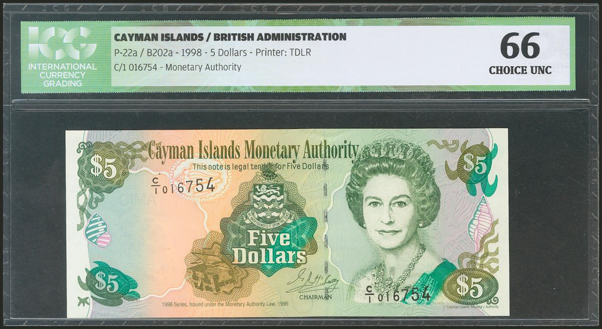 CAYMAN ISLANDS. 5 Dollars. 1998. (Pick: 22a). ICG66.