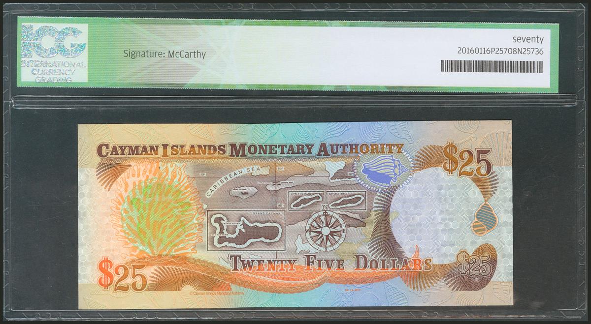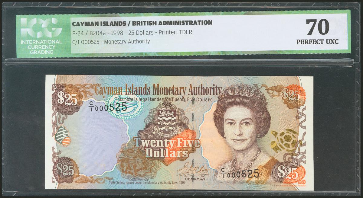 CAYMAN ISLANDS. 25 Dollars. 1998. Palindromic and low number. (Pick: 24). ICG70.