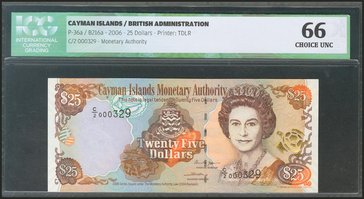 CAYMAN ISLANDS. 25 Dollars. 2006. (Pick: 36a). ICG66.