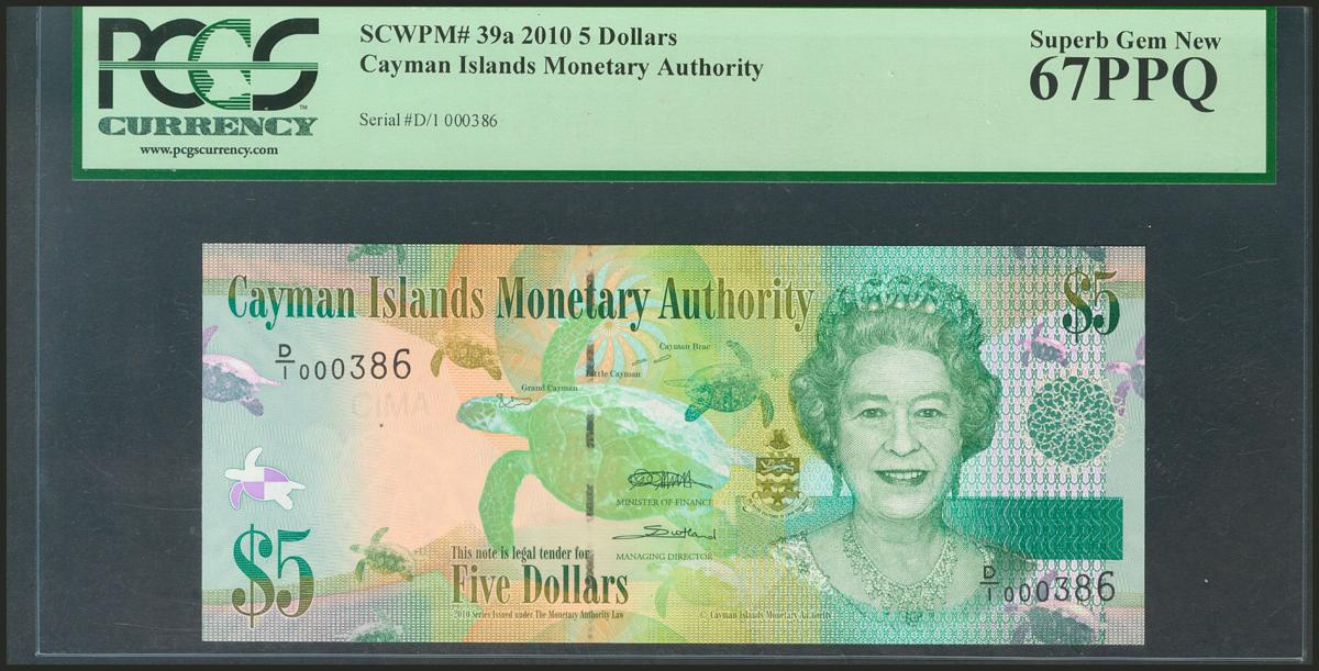 CAYMAN ISLANDS. 5 Dollars. 2010. (Pick: 39a). PCGS67PPQ.