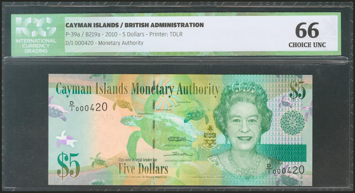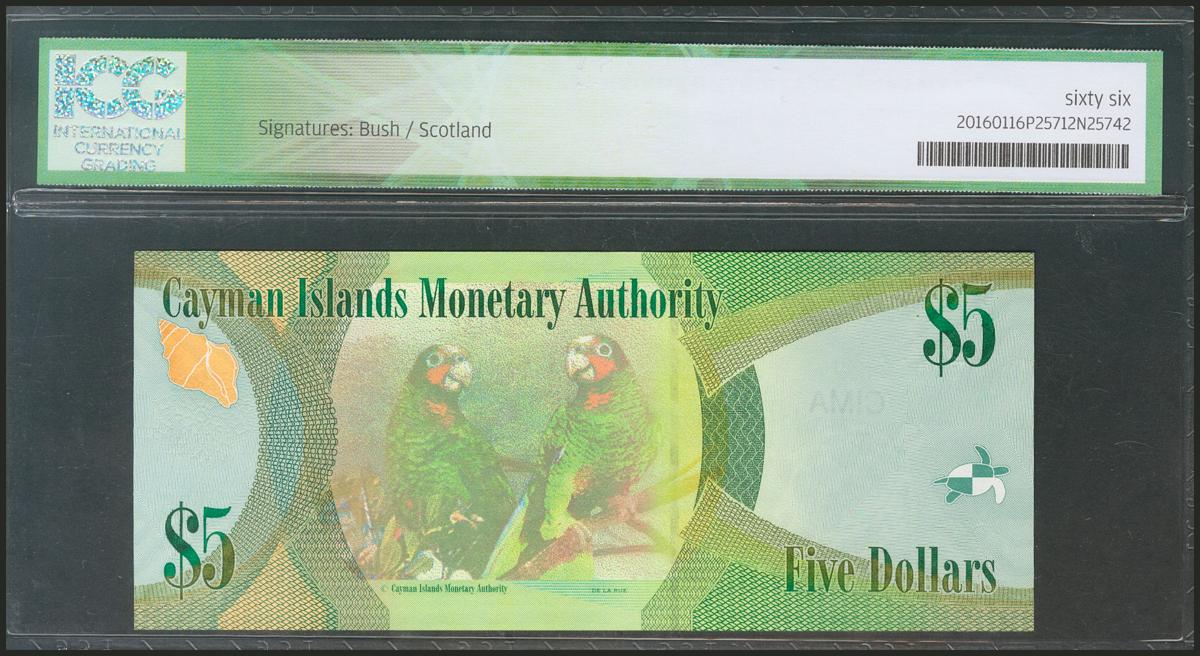 CAYMAN ISLANDS. 5 Dollars. 2010. (Pick: 39a). ICG66.