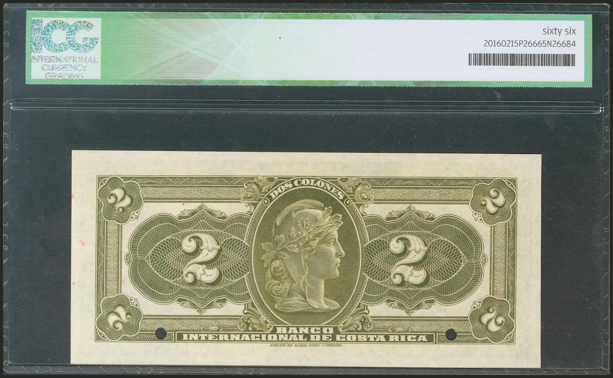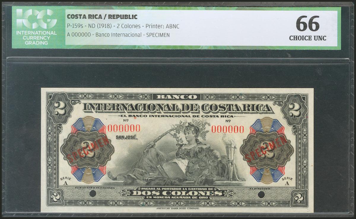 COSTA RICA. 2 Colones. 1918. Specimen A000000. (Pick: 159s). ICG66.