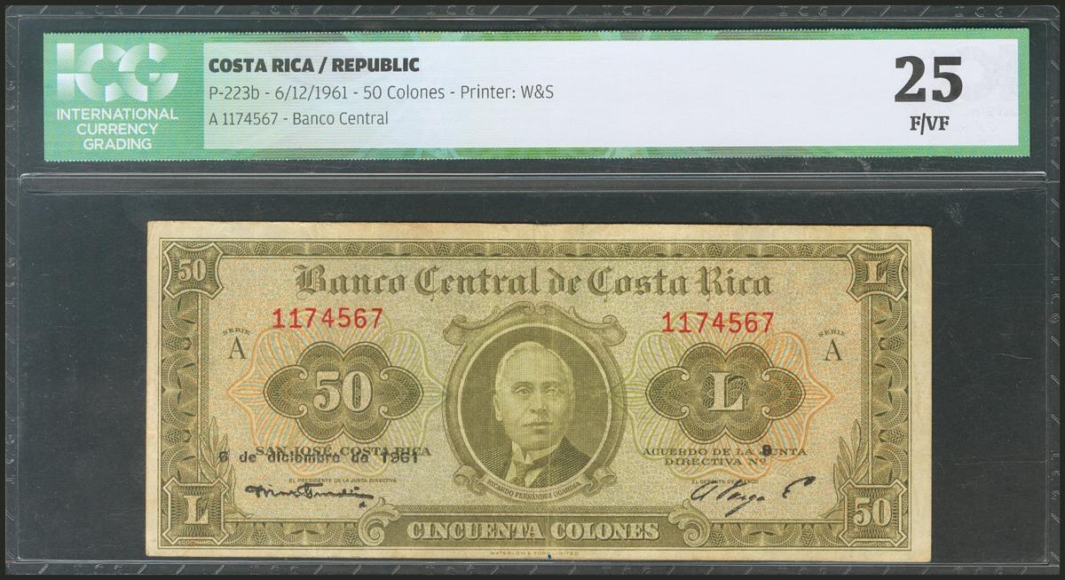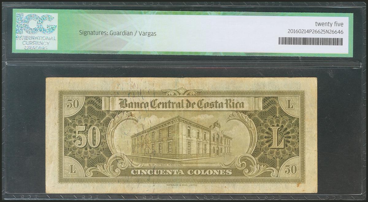 COSTA RICA. 50 Colones. 6 December 1961. (Pick: 223b). ICG25.