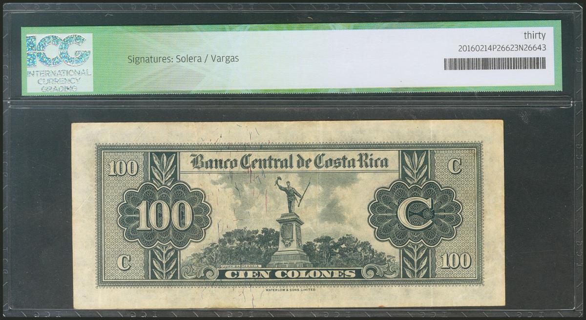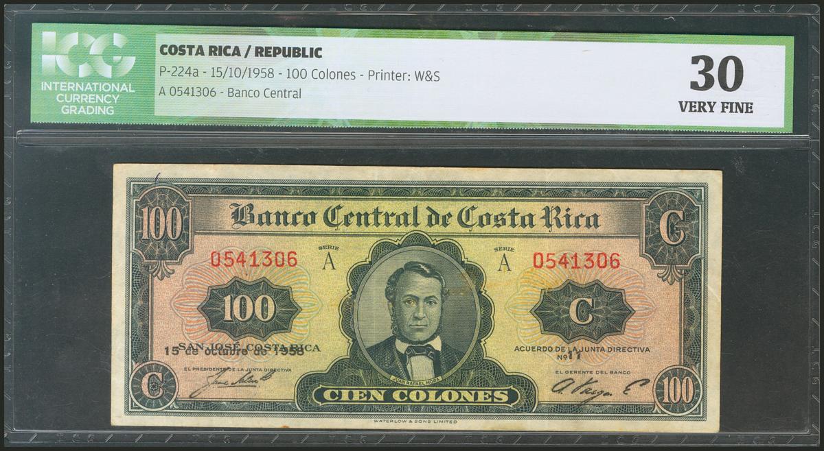 COSTA RICA. 100 Colones. 15 October 1958. (Pick: 224a). ICG30.