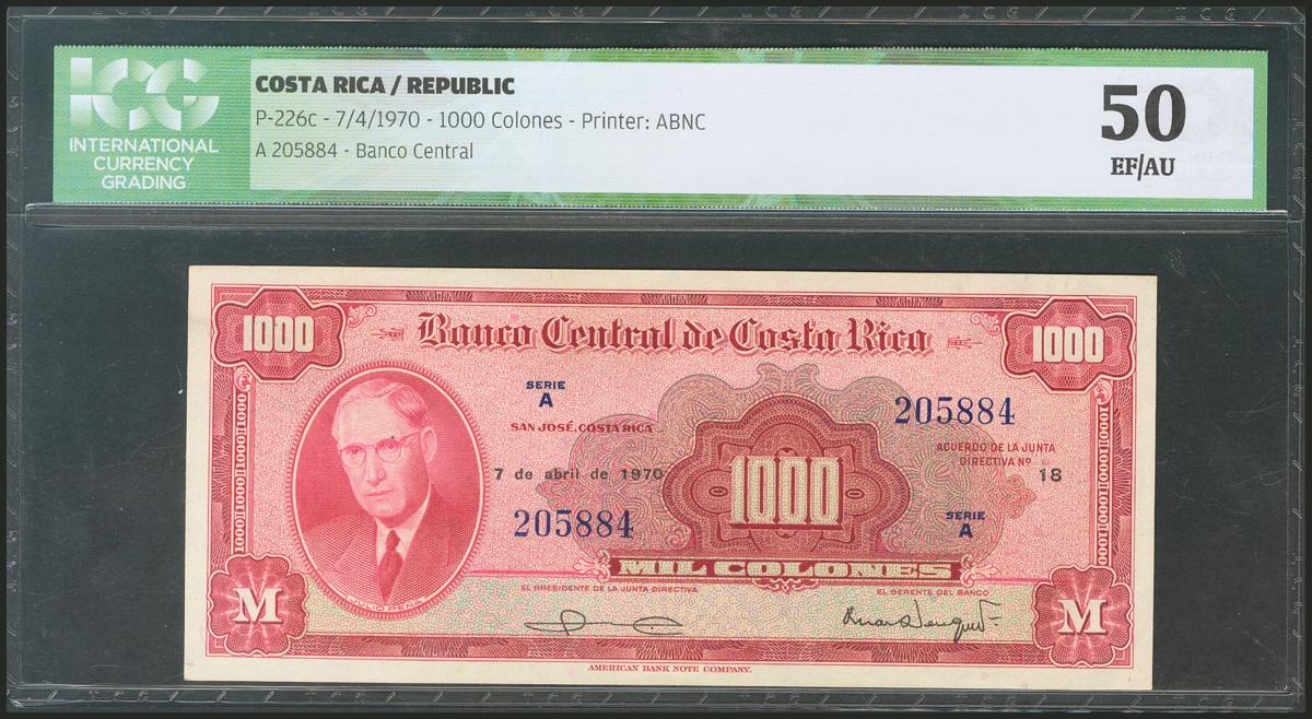 COSTA RICA. 1000 Colones. 7 April 1970. (Pick: 226c). ICG50.