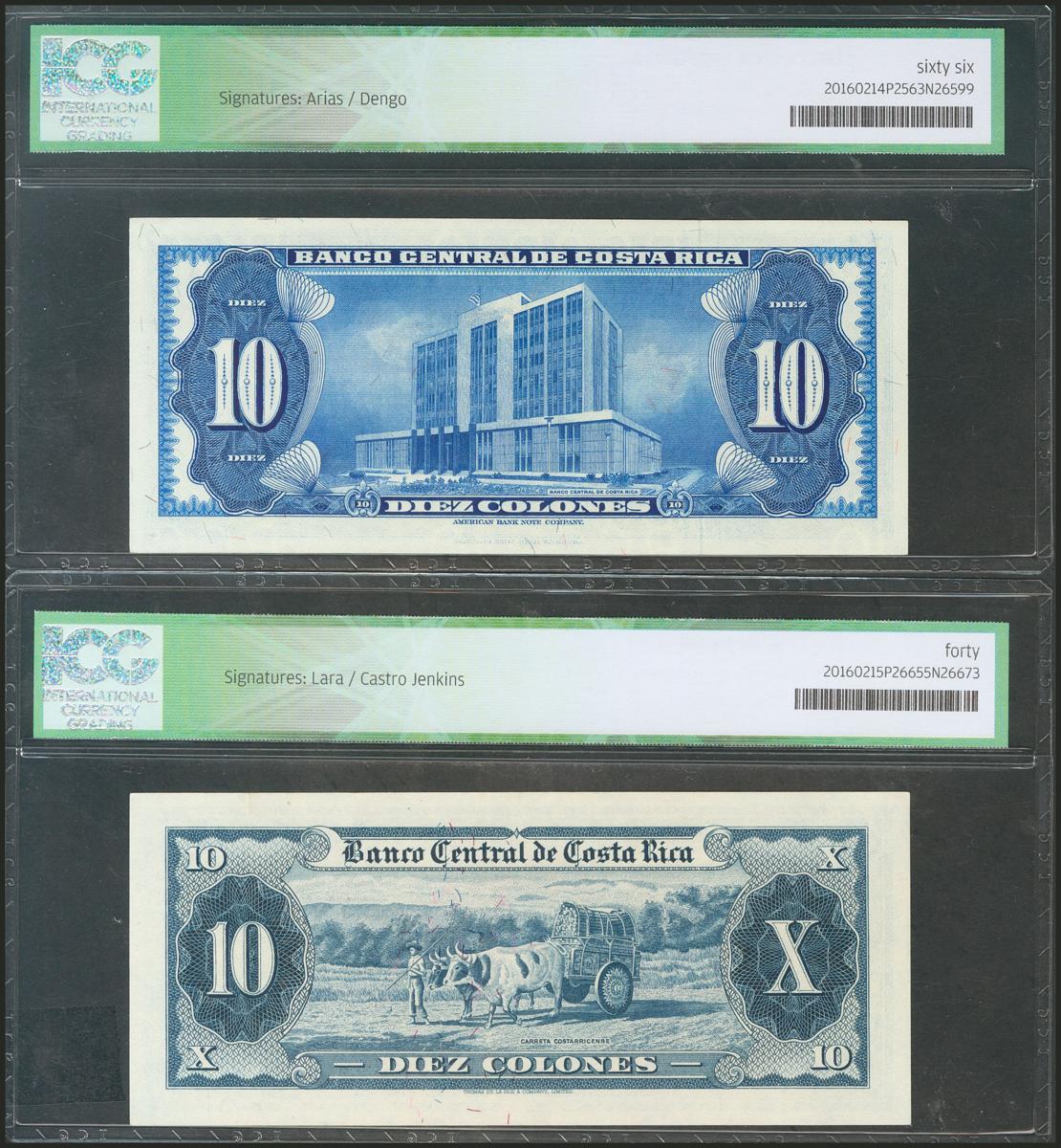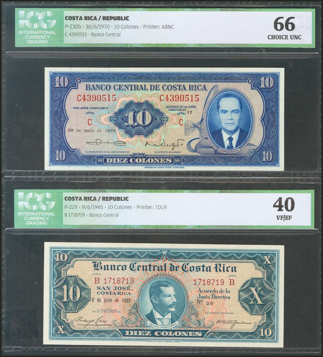 COSTA RICA. Set of 2 banknotes of 10 Colones. 1965/1970. (Pick: 229/230b). ICG40/66