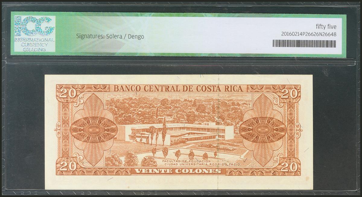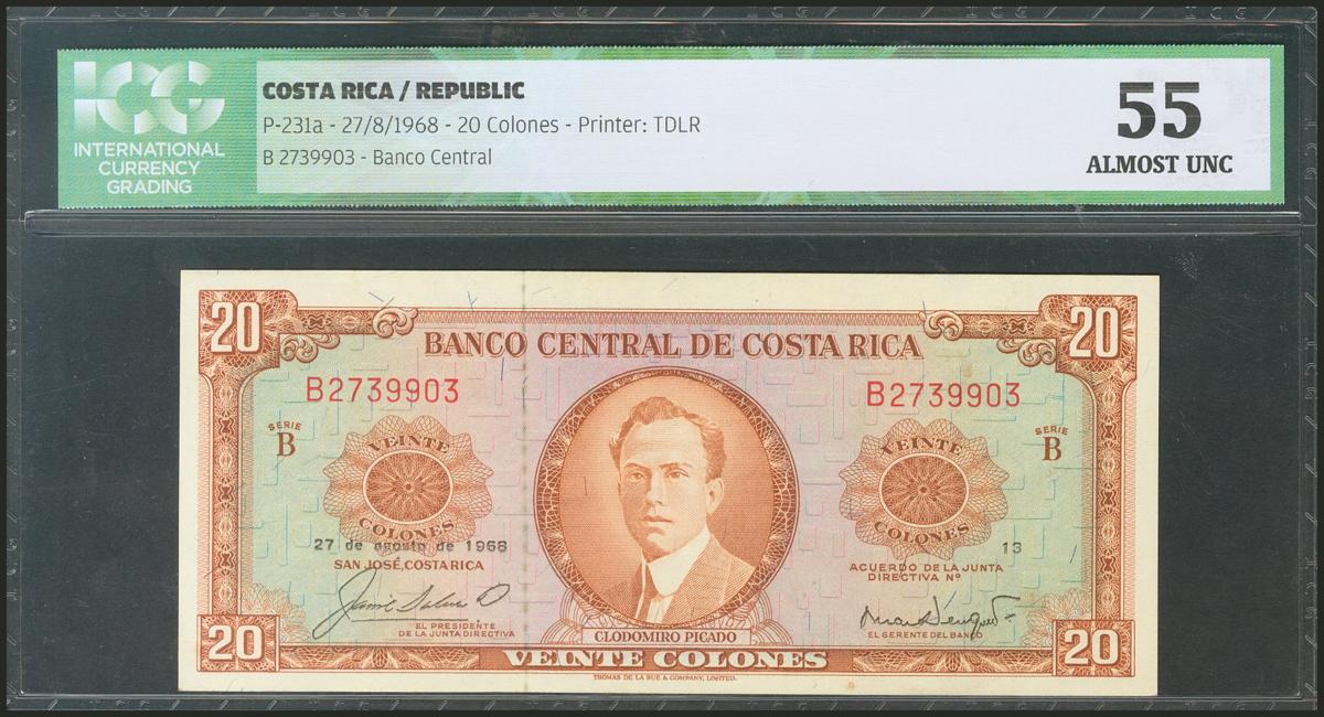 COSTA RICA. 20 Colones. 27 August 1968. (Pick: 231a). ICG55.