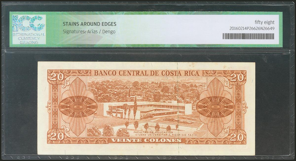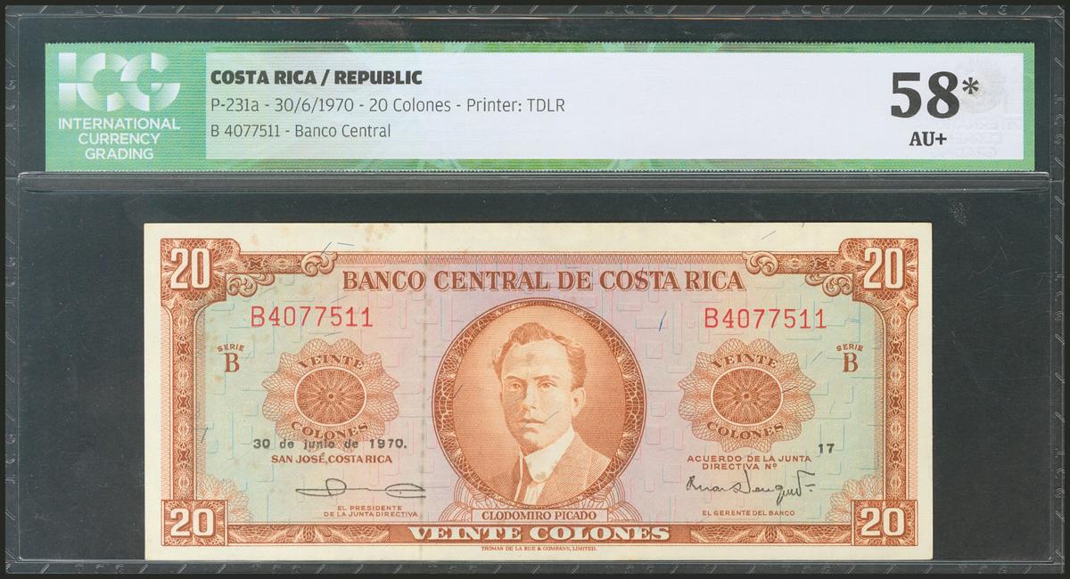 COSTA RICA. 20 Colones. 30 June 1970. (Pick: 231a). ICG58* (stains aroud edges).